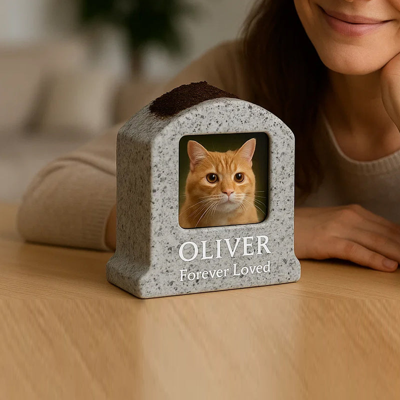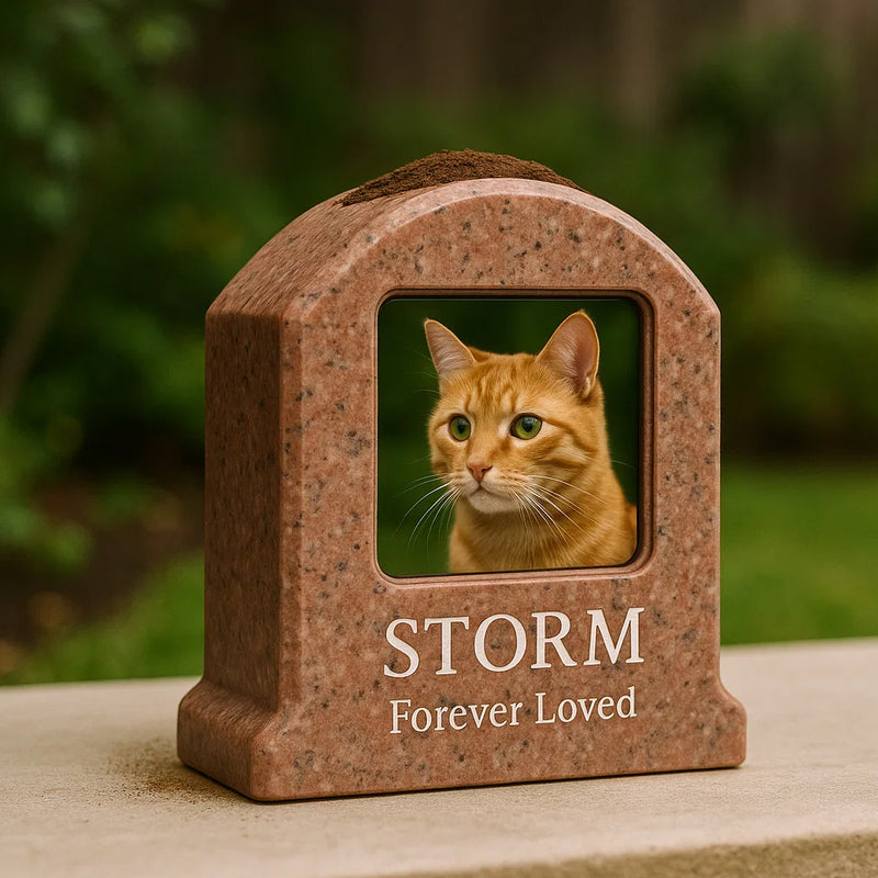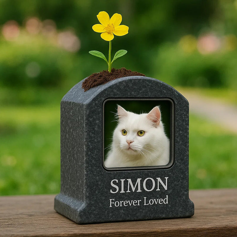 Personalized Pet Memorial with Picture Frame & Flower Planter – Custom Granite Tombstone for Pets
