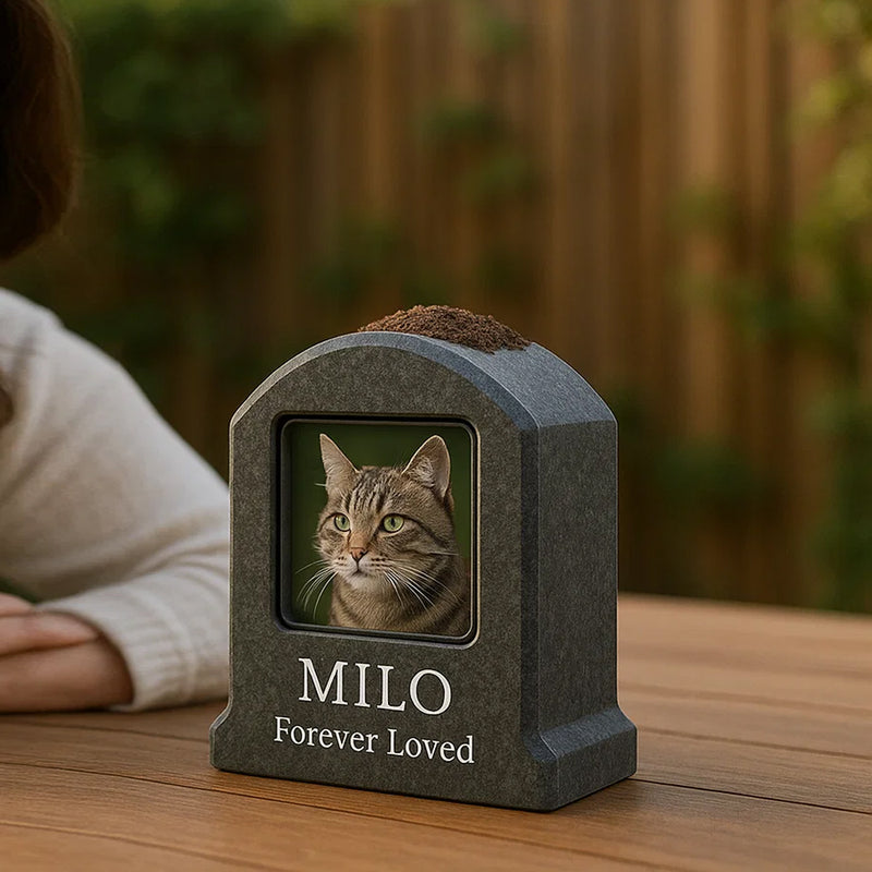 "The craftsmanship is beautiful, and it feels so personal to have Milo’s photo framed this way. The planter feature adds life and warmth, making it a heartfelt tribute that blends perfectly with my garden space."